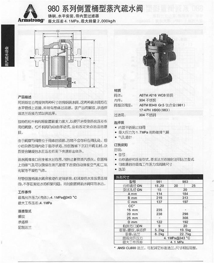 美国阿姆斯壮倒吊桶蒸汽疏水阀原装进口,阿姆斯壮980疏水阀厂家直销